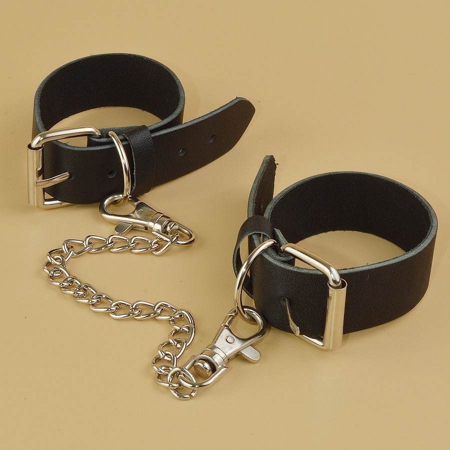 Оковы изготовлены из натуральной кожи. Регулируются пряжкой, имеют цепочку с карабинами. , ,Длина упаковки 16, ширина 10, высота 8 см. Вес брутто 100 г.