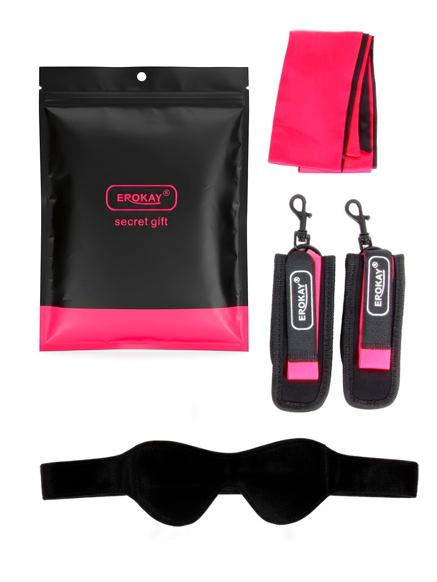 Набор аксессуаров для любителей БДСМ игр. В комплект входят маска, наручники, повязка. Наручники изготовлены из мягкой ткани, предотвращающей натирание ткани. Снабжены застёжками-липучками для контроля силы затягивания и карабинами для фиксации.Маска из бархатистой ткани предназначена для ограничения зрения. Надев её, подчинённый партнёр начинает чувствовать всё более остро, а ощущения становятся насыщеннее и ярче. Застёжка-липучка позволяет регулировать размер маски. Лента из мягкой ткани может использоваться для завязывания глаз, рук, ног или как другой элемент игры. , ,Набор изготовлен из качественных материалов, выполнен в модной цветовой гамме. Может стать роскошным тематическим подарком.
