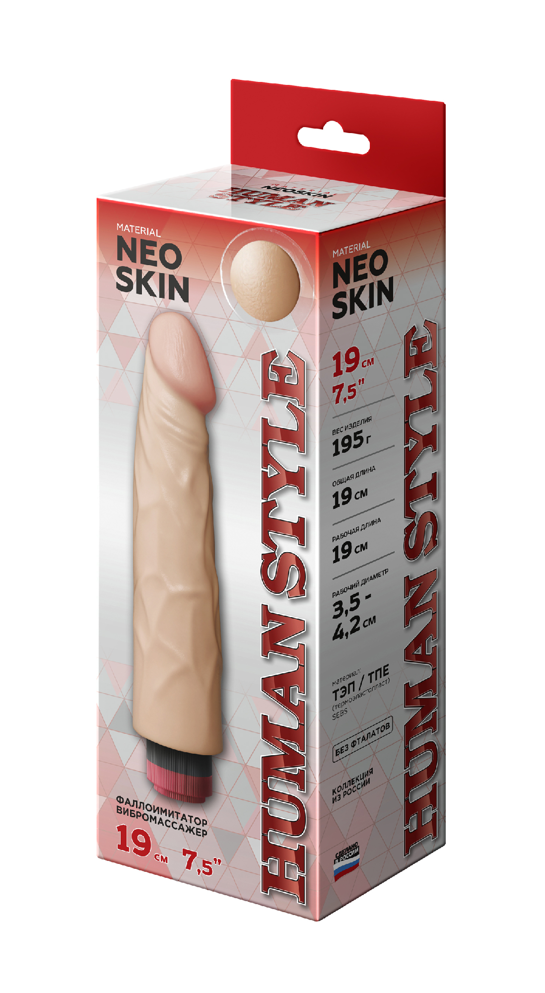 Общая длина в мм 190Рабочая длина в мм 190Диаметр в мм 42Диаметр головки в мм 35Цвет ТелесныйМатериал НеоскинВибрация изделия ДаЛиния товара HUMAN STYLEВысота упаковки, мм 60Длина упаковки, мм 250Ширина упаковки, мм 95Вес нетто 0.203Вес брутто 0.283Вибромассажёр HUMAN COPYРеализм до мелочей. Как живой.Вибромассажёр HUMAN COPY создан для тех, кто ценит максимальное сходство с натуральным фаллосом — как внешне, так и по ощущениям. Все модели данной серии очень правдоподобные: от бархатистой текстуры кожи до естественной упругости при изгибе.Гибкий корпус с встроенным вибромеханизмом обеспечивает плавные движения и управляемую вибрацию — вы сами выбираете уровень возбуждения.Основные характеристики:• Цвет: телесный (,кожа), — усиливает эффект естественности• Материал: Neoskin —разработка, имитирующая живую плоть, безопасная для кожи• Максимальная реалистичность — форма и структура полностью повторяют биологический прототип.• Нежная поверхность — тонкая, мягкая оболочка имитирует живую кожу, а складки выглядят и ощущаются естественно.• Гелевая головка — особенно мягкая, усиливает ощущения и делает контакт максимально комфортным.• Полужёсткий каркас — обеспечивает умеренную гибкость и устойчивость, как при естественной эрекции.• Форма - классическая, повторяющая контуры мужского фаллоса, с немного увеличенной головкой для усиленной стимуляции точки G.Технологии и материалы• Изготовлен по технологии медицинского протезирования с применением композитной структуры:• Верхний слой — сверхмягкий материал Neoskin, гипоаллергенный и приятный на ощупь,• Внутренний каркас — эластичный полимер, обеспечивающий форму и устойчивость.• Разработка и авторское право: LOVETOY®Функциональные особенности• Сильная вибрация — сосредоточена в центральной части для усиленной стимуляции.• Источник питания: работает от 2 батареек АА (,не входят в комплект),.Упаковка и презентация• Изделие поставляется в жёсткой коробке из микрогофрокартона с вставленным в специальное окно пробником материала — обеспечивает сохранность товарного вида при транспортировке и удобную демонстрацию текстуры.Для кого этот фаллоимитатор?• Для тех, кто хочет ощутить контакт, как с живым человеком• Для пар, желающих усилить интимную связь через новые ощущения• Для пользователей, экспериментирующих с формами, БДСМ и ролевыми играми• Для коллекционеров — настоящий шедевр реалистичного дизайнаHUMAN COPY — выбор тех, кто хочет больше, чем игрушка. Это почти живое присутствие. Реалистичность, мощная вибрация и продуманная конструкция в одном устройстве.Как использовать:• Перед первым применением мойте теплой водой с мылом.• Используйте водную смазку — она совместима с материалом и снижает риск дискомфорта.• После использования — тщательно мойте и просушивайте в тени.• Храните в сухом месте, избегая деформации.• Можно использовать с презервативом — для гигиеничного применения.